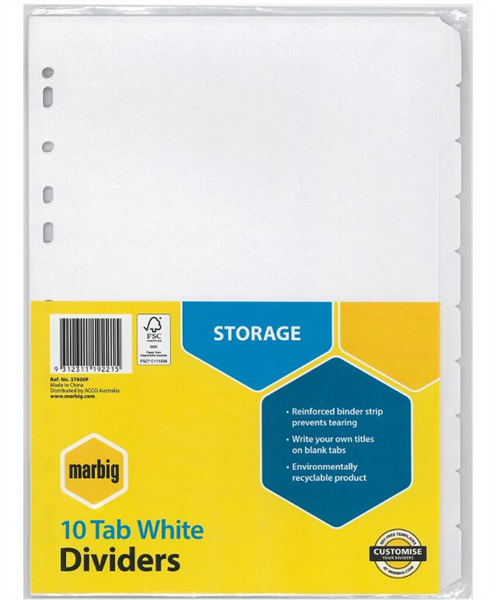 Marbig Dividers 10 Tab Manilla A4 White