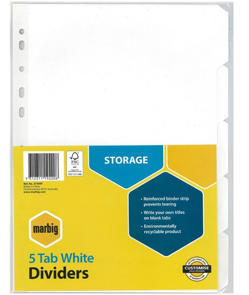 Marbig Dividers 5 Tab Manilla A4 White
