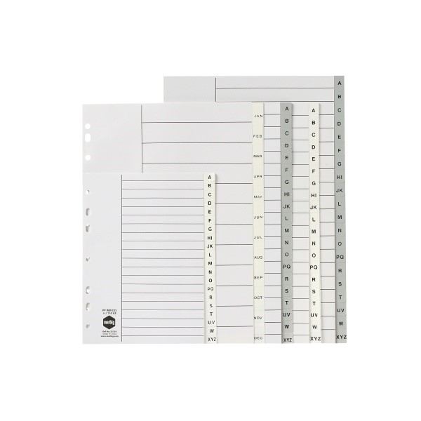 Tabs are printed A-Z for alphabetical filing and are available in grey or white
