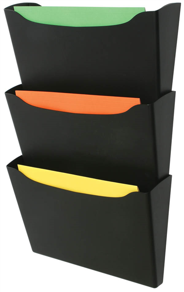 Three compartment wall pocket to aid in your filing and storage needs and keep files readily accessible without taking up valuable desk space.