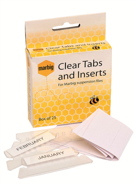 The marbig clear tabs and inserts are ideal for marbig suspension files.