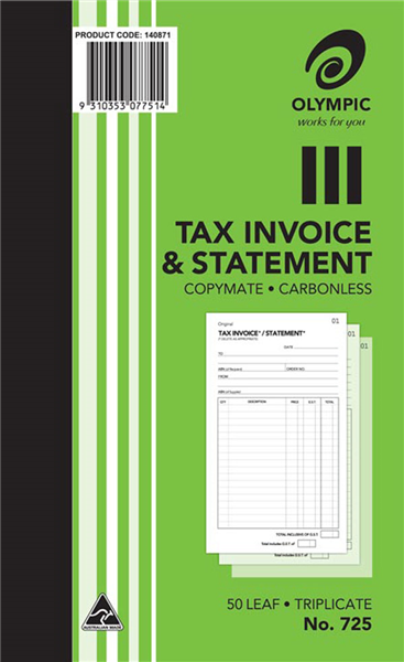 Olympic 725 Invoice and Statement Book Triplicate (10 per Pack)
