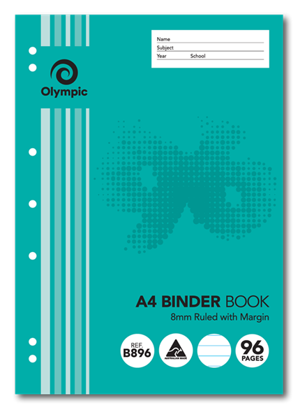 Olympic A4 Binder Book 96 Page 8mm Ruled (10 per Pack)