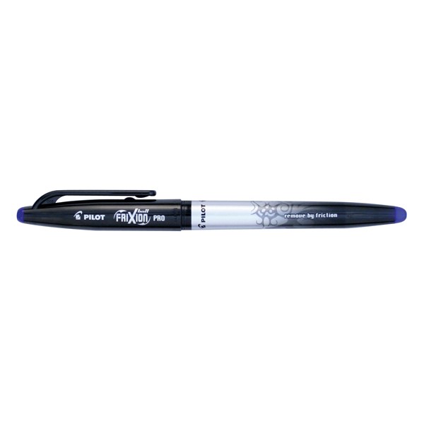 Pilot Frixion Pro Erasable blue gel pen features a unique thermosensitive ink which turns clear when rubbed with the end stud and has no eraser debris or paper abrasion