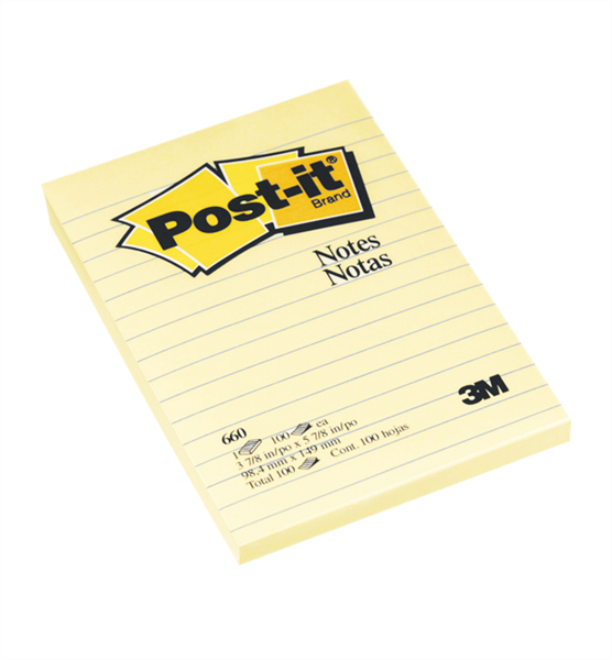Post It Notes Pad Ruled 660 Canary Yellow (12 per Pack)
