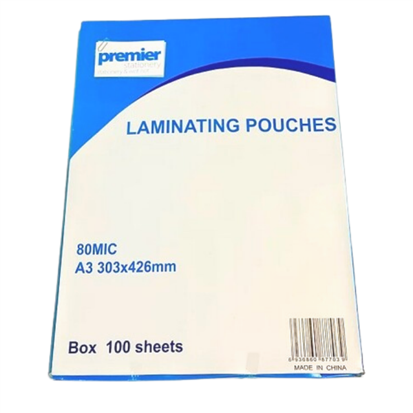 Premier Laminating Pouch A3 80 Micron Clear Pk100
