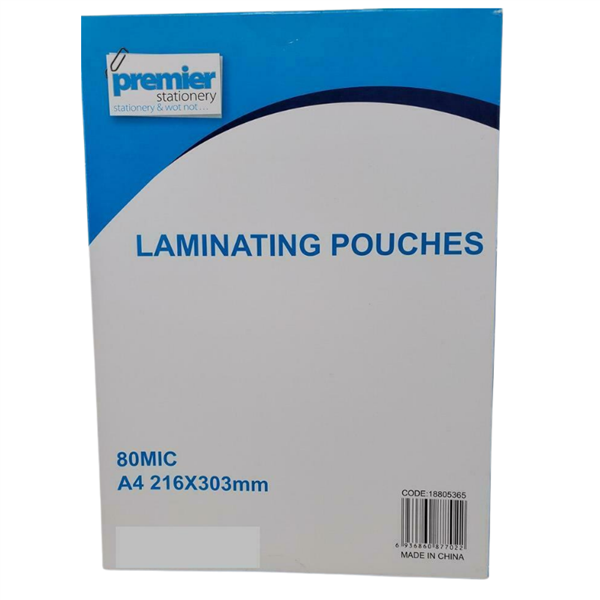Premier Laminating Pouch A4 80 Micron Clear Pk100