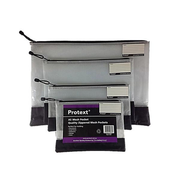 Protext product that is a very handy Mesh Pouches and are a durable storage solution, have an easy glide zipper with toggle and a Note Pocket for easy reference.