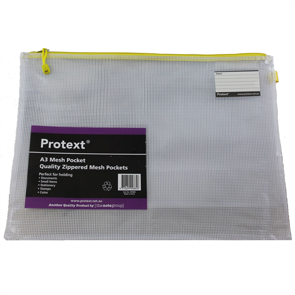 Protext handy Mesh Pouches are a durable storage solution, have an easy glide zipper with toggle and a Note Pocket for easy reference