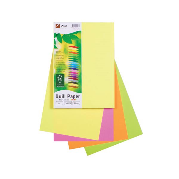 Quill Copy paper A4 80gsm Flouro Assorted 250 Pack