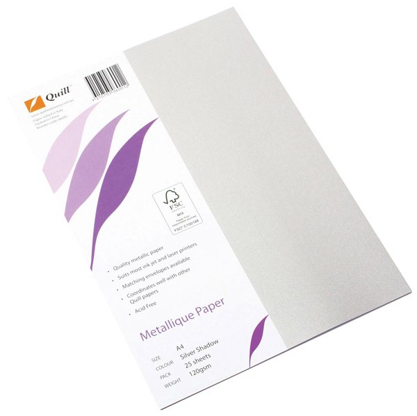 Quill Shadow Paper A4 Silver 25 Pack