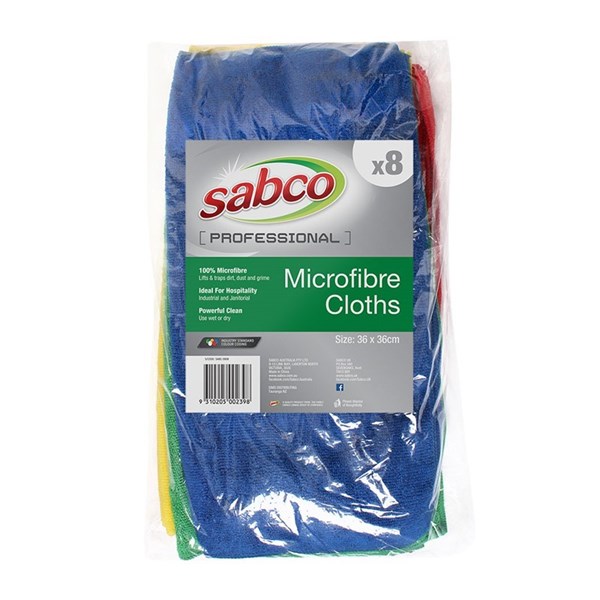 Sabco Mixed Coloured Microfibre Cloths 8 Pack