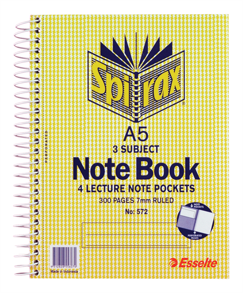 Spirax 572 Notebook 3 Subject 150 Leaf A5 (5 per Pack)