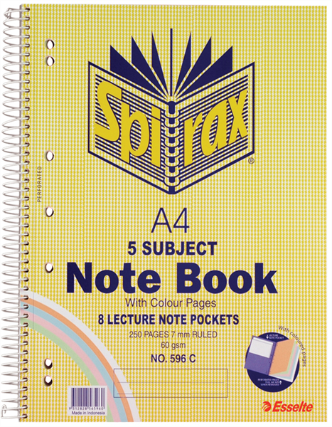 Spirax 596C 5 Subject Notebook Coloured A4 Each (5 per Pack)
