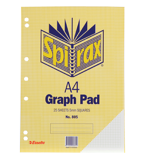 Spirax 805 Graph Pad 7 Hole Punched 50 Leaf 5mm A4 (10 per Pack)