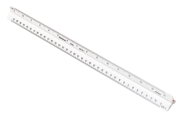 Mars scale rules feature moulded graduation, white plastic and colour-coded grooves.