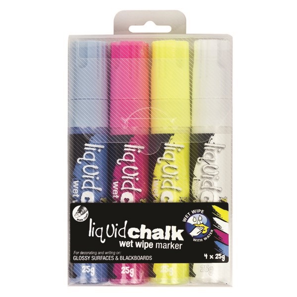 Texta Liquid Chalk Marker 15mm Assorted 4 Wallet