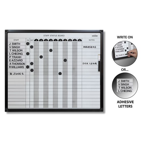 VisionChart Whiteboard Magnetic Planner 20 Name Staff Status