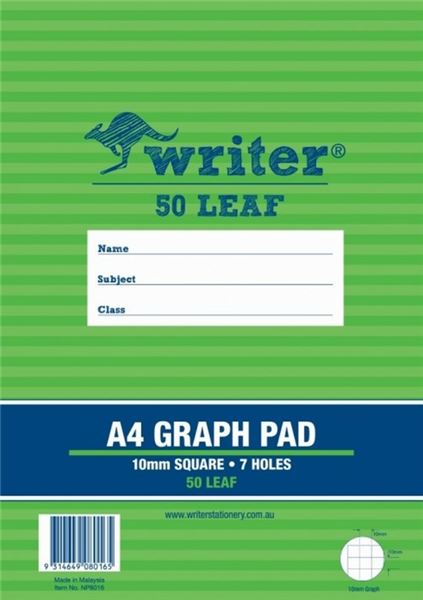 Writer Graph Pad A4 50 Leaf 10mm 7 Holes (10 per Pack)