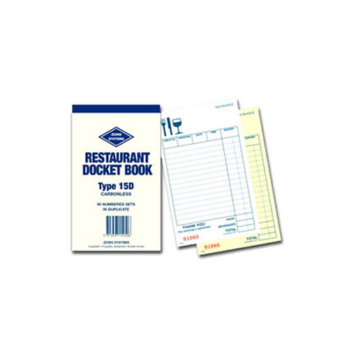 Zions Restaurant Docket Book Duplicate CarbonLess 25 Pack